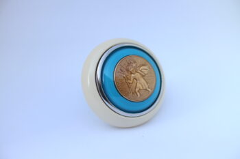 VW Deluxe Horn Push Button St. Christopher Turquoise blue / ivory